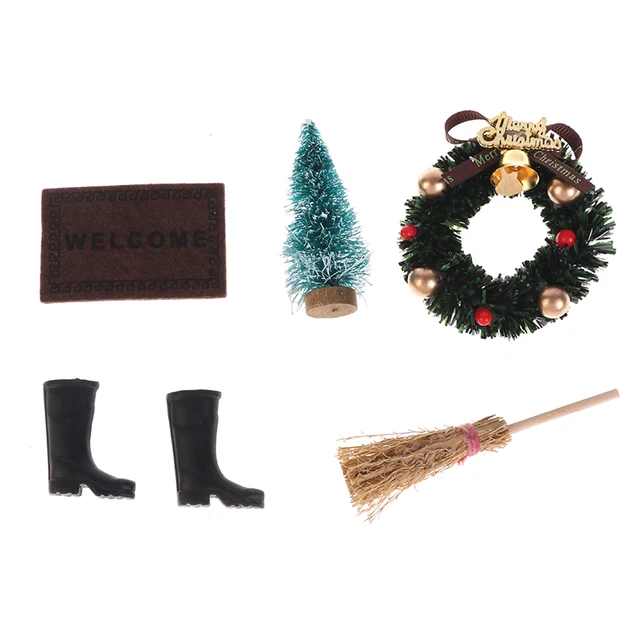 5pcs Set Exquisite Dollhouse Christmas Boots Tree Wreath Pine Santa Claus Carpet Broom Holiday Decoration Accessories Doll House Accessories Aliexpress